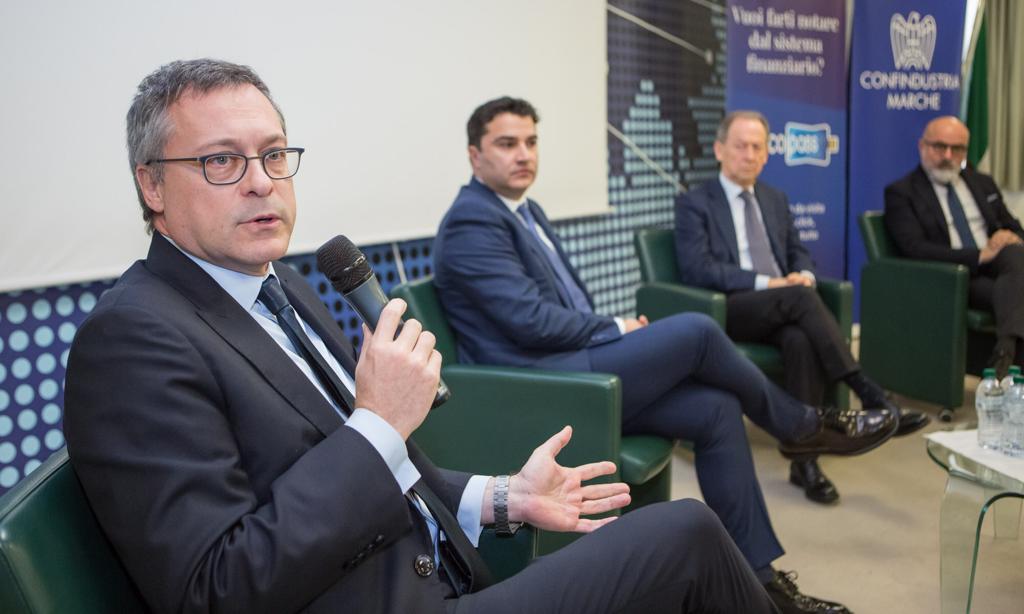Ancona – Al convegno organizzato da Confindustria Marche Nord nella sede dell’Associazione degli industriali si è affrontato il tema “Credito e finanza per la crescita delle imprese”. Ospiti d’eccezione del convegno: Carlo Bonomi Presidente Assolombarda, Diego Mingarelli Presidente Piccola Industria Confindustria Marche, Franco Di Colli Vice Presidente ABI Marche, Carlo Robiglio Presidente Piccola Industria Confindustria. Nell’analisi della situazione attuale di Confindustria Marche Nord, la Andrea Montelpare Spa è stata indicata fra le tre aziende virtuose che hanno saputo crescere durante la crisi, insieme a Gruppo Filippetti e Renco SpA. Le tre aziende sono state portate all’incontro come esempio positivo di crescita in quelli che sono anni di recessione economica nazionale e territoriale. Ad essere sottolineata proprio la capacità delle aziende di generare crescita, cash flow e di attrarre investimenti e credito da banche e privati. “Un paese ingessato” quello descritto dal Presidente di Confindustria Marche Claudio Schiavoni, e mentre il tasso di crescita nazionale è del 1,6% le Marche registrano solo uno 0,2% “peggio di noi solo il Molise”. I motivi del ritardo secondo Schiavoni sono legati anche ad una difficoltà del sistema creditizio locale “Oggi due soli gruppi coprono il 64% delle banche. Occorre fare sistema, lo strumento Bancopass sarà importantissimo per le nostre imprese nel facilitare l’accesso al credito”. Andrea Montelpare, dell’omonima azienda, esporta da anni in tutto il mondo la qualità dell’artigianato marchigiano, con le sue scarpe di lusso per bambini. Mentre il mondo delle calzature assisteva ad una catastrofica contrazione del mercato Montelpare viaggiava controcorrente, continuando a crescere. Importante per Montelpare essere presente su più mercati a livello globale: “La qualità dei nostri artigiani ci permette di fare la differenza. Ma è importante avere un piano chiaro da sottoporre alle banche se si vogliono ottenere finanziamenti. Spesso sono proprio gli imprenditori a non avere un chiaro progetto di sviluppo. Parliamo di più crisi per il mondo delle calzature: il mercato russo, la svalutazione del dollaro e del prezzo del petrolio. Occorre essere presenti a livello globale nel settore della moda per evitare brutte sorprese”.Andrea Montelpare SpA esempio di azienda virtuosa al convegno di Confindustria Marche Nord